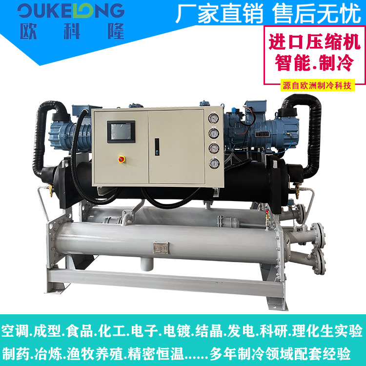 歐科隆150HP雙機頭螺桿式冷水機是新一代超高效工業制冷設備,采用革命性氣懸浮軸承技術,實現150匹(約450kW)制冷量輸出,重新定義大型工業制冷的能效標準。