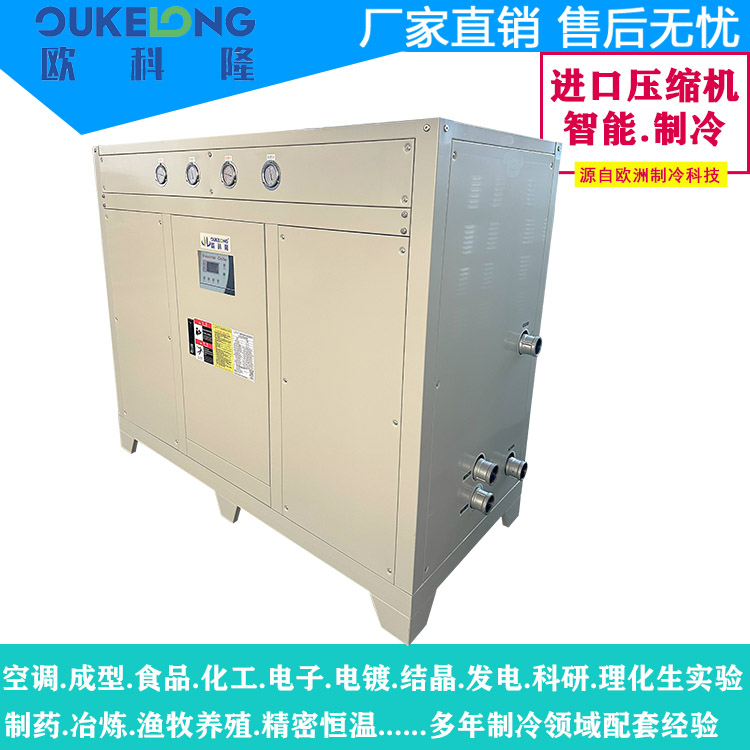 歐科隆制冷20匹水冷式冷水機是一款高效工業級制冷設備,專為大型生產及工藝冷卻需求設計,核心特點如下: