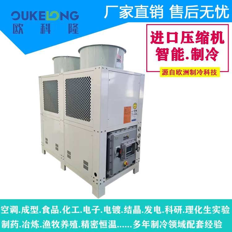 風(fēng)冷箱式防爆冷水機(jī),是歐科隆制冷打開(kāi)市場(chǎng)的拳頭產(chǎn)品,歐科隆制冷擁有廣泛的防爆冷水機(jī)配套經(jīng)營(yíng),包括臭氧發(fā)生器,甲烷發(fā)電,化工化纖,石油天然氣,新型環(huán)保行業(yè)等,歐科隆防爆冷水機(jī)采用隔爆、增安、本安、正壓、充油、充砂、無(wú)火花、澆封和氣密等多種防爆方式,使機(jī)組可以在易燃易爆場(chǎng)合使用。
