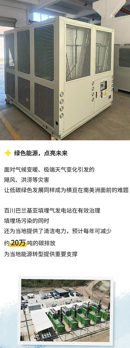 該公司是一家從事填埋發電的高科技新能源企業,其沼氣發電廠遍布全國各地共計200多家。我公司已于7年前跟該公司達成戰略合作伙伴關系。在合作過程中我們總是事畢親恭,事無巨細始終把用戶的事情當做第一要務。我們真誠的態度和優質的產品獲得的該公司全員上下一致好評。每年從我公司采購的冷水機組不少于50套。