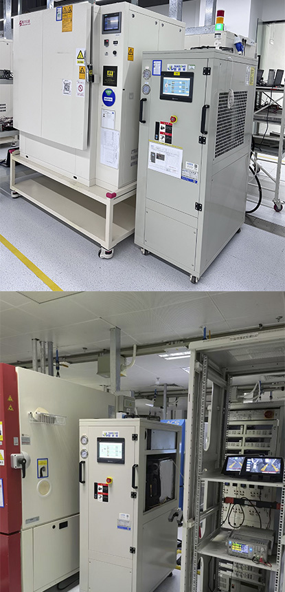歐科隆應(yīng)用于汽車行業(yè)三電系統(tǒng)測試冷水機,是非標定制的高低溫液冷沖擊機組,對服務(wù)器進行高低溫沖擊飽和性測試。